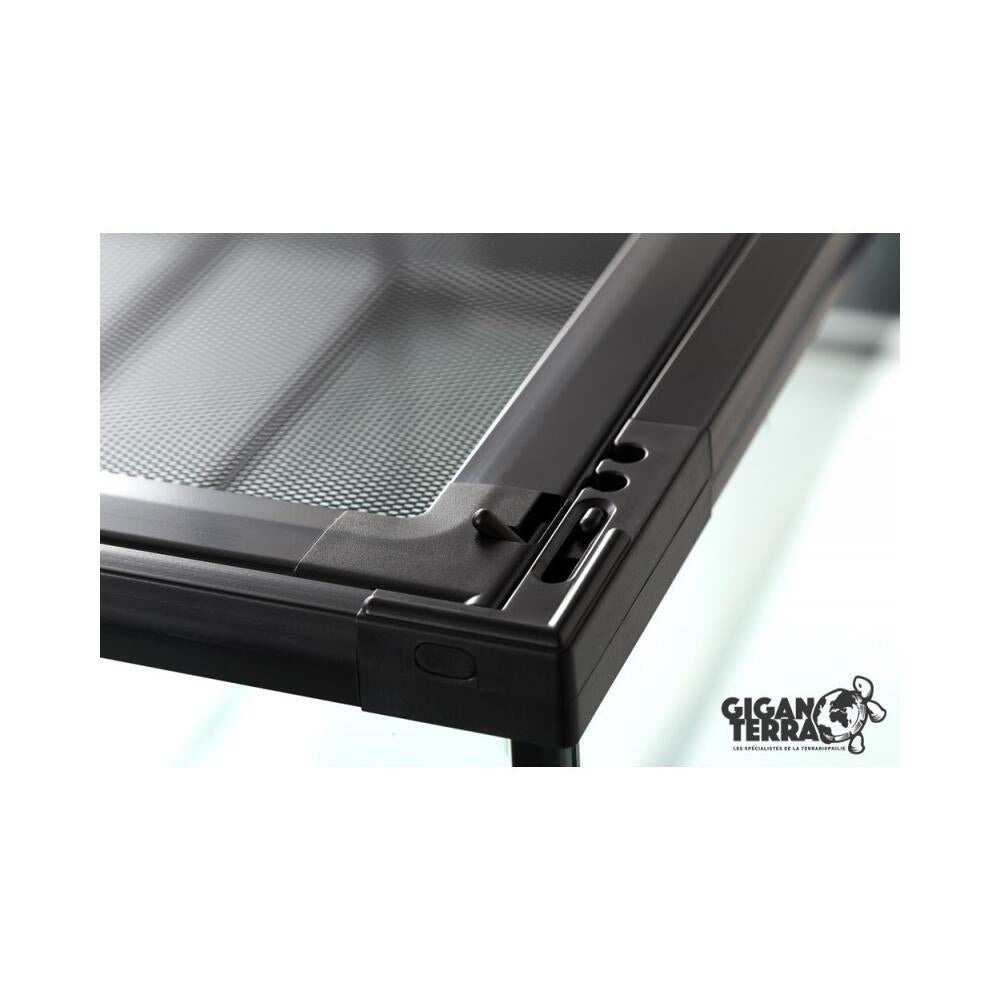 I terrari in vetro Giganterra sono progettati per conservare e mostrare i tuoi rettili e anfibi ripristinando il loro ambiente naturale. Disponibili in varie dimensioni, permettono di avere uno spesso strato di supporto sul fondo. Due ampi sportelli con chiusura garantiscono un facile accesso per la pulizia e l'alimentazione. Griglie di aerazione estraibili ed eventuale passaggio cavi sul piano. Dotato anche di un'apertura sulle griglie di aerazione che permette di fissare il tubo flessibile del nostro nebulizzatore GigaFogg.